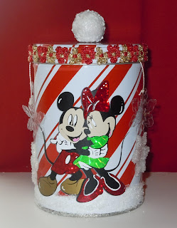 Love the Peppermint Candy tin idea. Great job on coordinating Mickey and Minnie so well with Christmas festive colors!